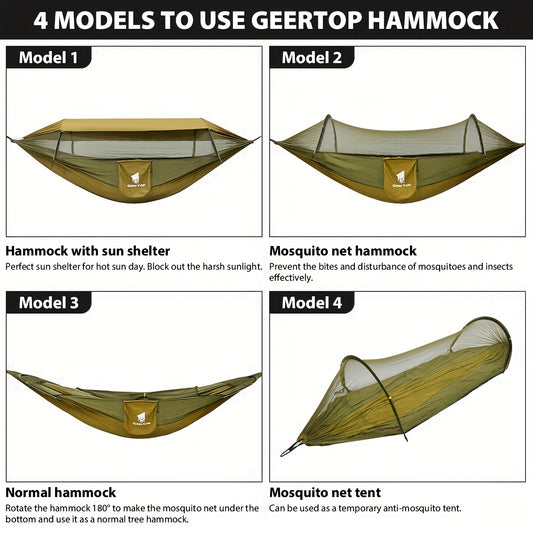 GeerTop 3-in-1 Camping Hammock with Mosquito Net & Sun Shelter - Durable, Easy Setup for Backpacking, Hiking, Beach & Garden