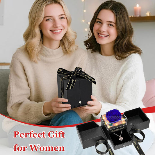 Light up Preserved Blue Rose Flower with Necklace,Birthday Gifts for Women,Christmas Rose Gifts for Her Mom Wife Grandma,Real Flower Mom Present for Women Christmas,Anniversary,Valentines