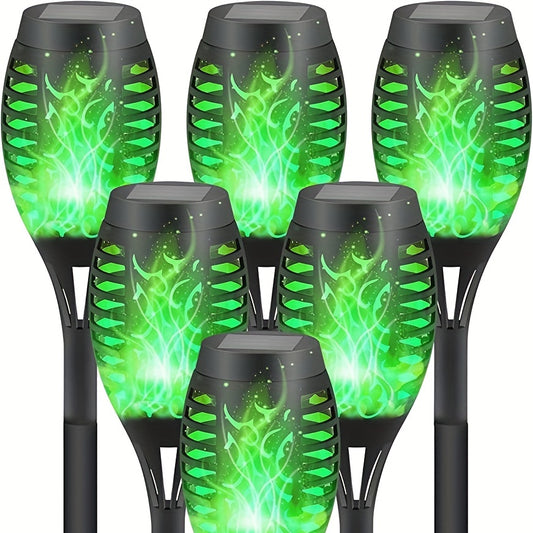 4pcs 12LED Solar Flame Lights, Suitable For Garden, Lawn, Path Decoration, Halloween Atmosphere Lights, Large Battery Working 11 Hours Lighting Torch Lights (Blue Green Purple Warm Color Light), Halloween Decorations Lights O