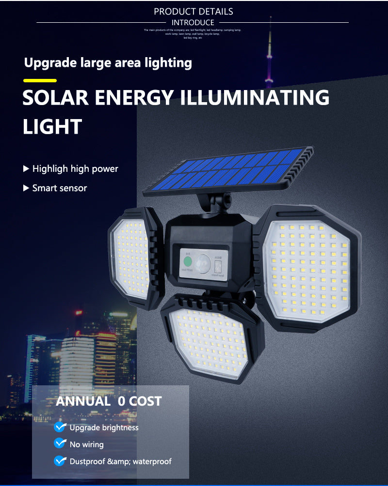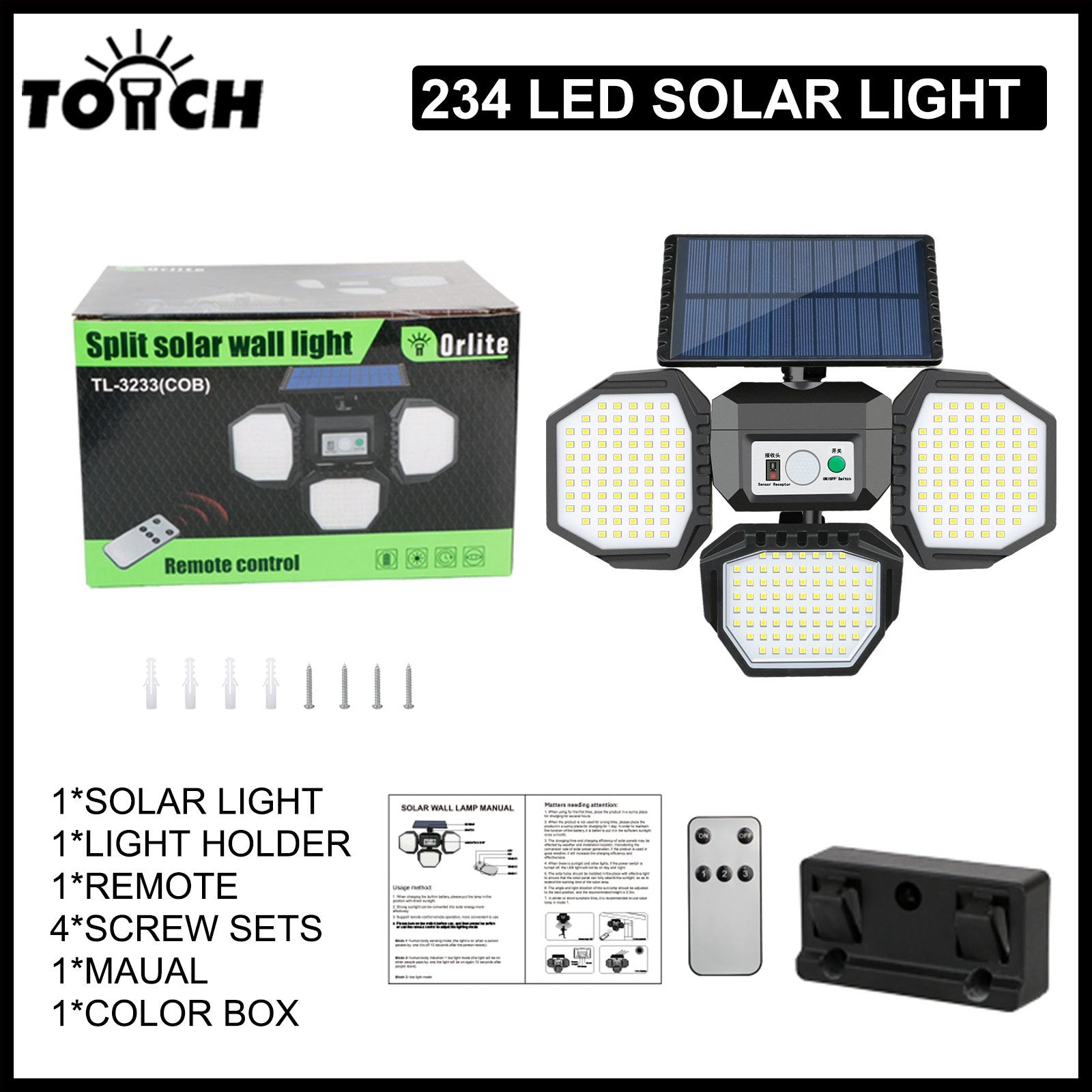 1pc 234 LED Split Solar Wall Light With Remote Control, Water-resistant, PIR Motion Sensor Security Floodlight For Outdoor Patio Yard Garage Garden, LED Lights