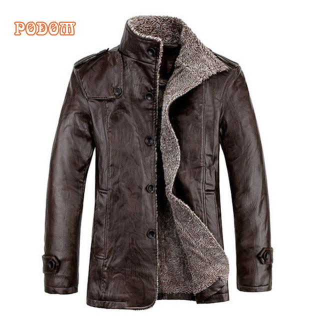 Retro PU Leather Jackets Men's Winter Warm Thick Coats