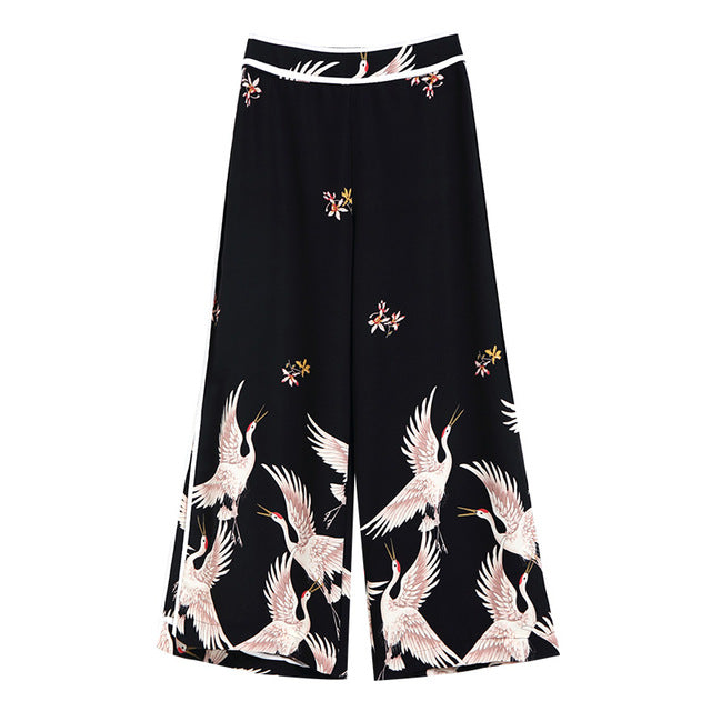 S-5XL Japan Kimono Style Crane Print Suit Set