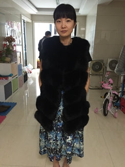 SQXR FUR 100% Real Fox Fur Vest Natural Whole Fox Fur Vest